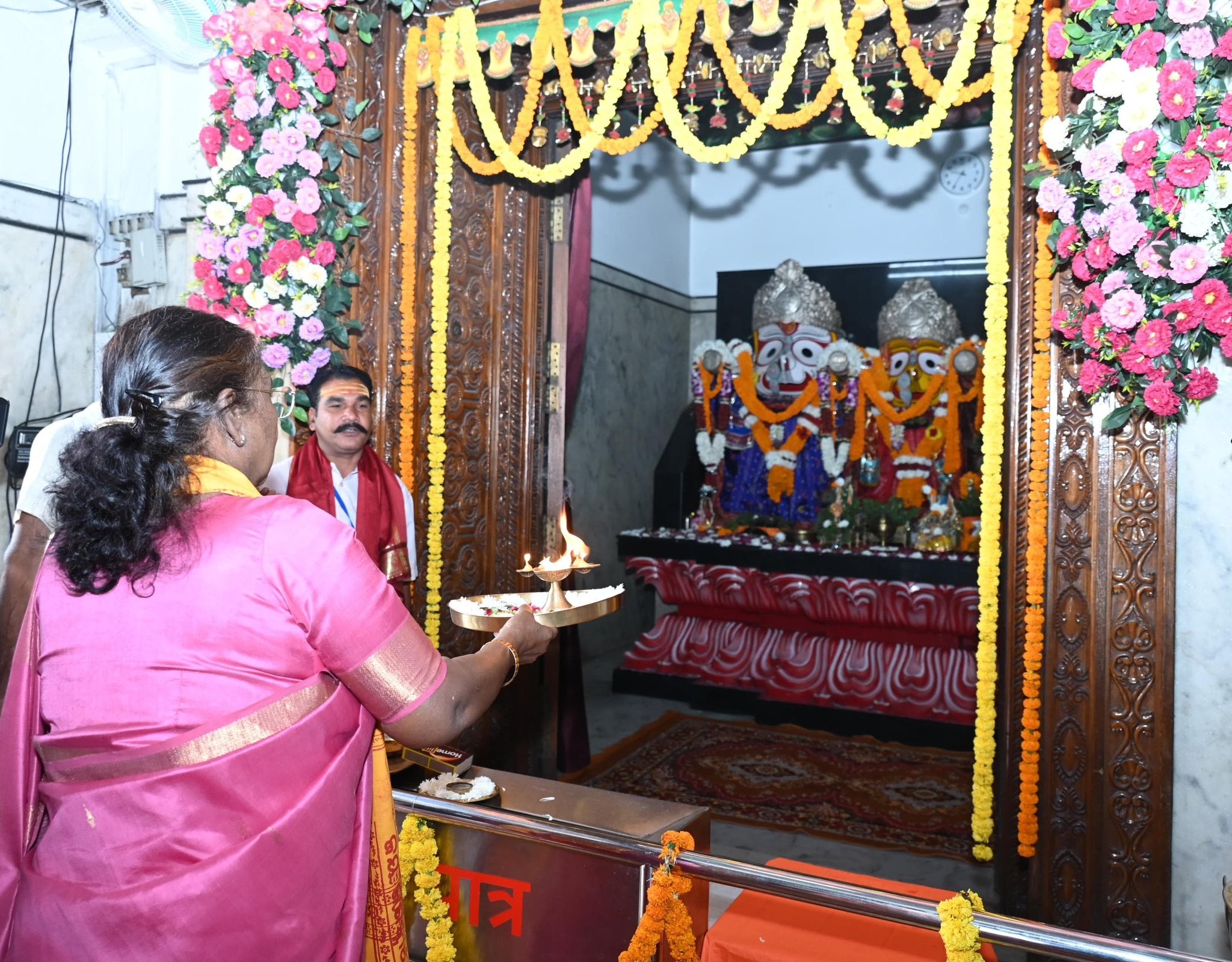 रायपुर | राष्ट्रपति द्रौपदी मुर्मू के छत्तीसगढ़ दौरे का आज दूसरा दिन है| राष्ट्रपति आज कई कार्यक्रम में शामिल हो रही है| सुबह सबसे पहले मुर्मू रायपुर के गायत्री नगर स्थित जगन्नाथ मंदिर पहुंची| मंदिर में उन्होंने भगवान जगन्नाथ, भगवान बलभद्र और देवी सुभद्रा की पूजा अर्चना की| और देश के लोगों की खुशहाली, समृद्धि और प्रगति के लिए प्रार्थना की|